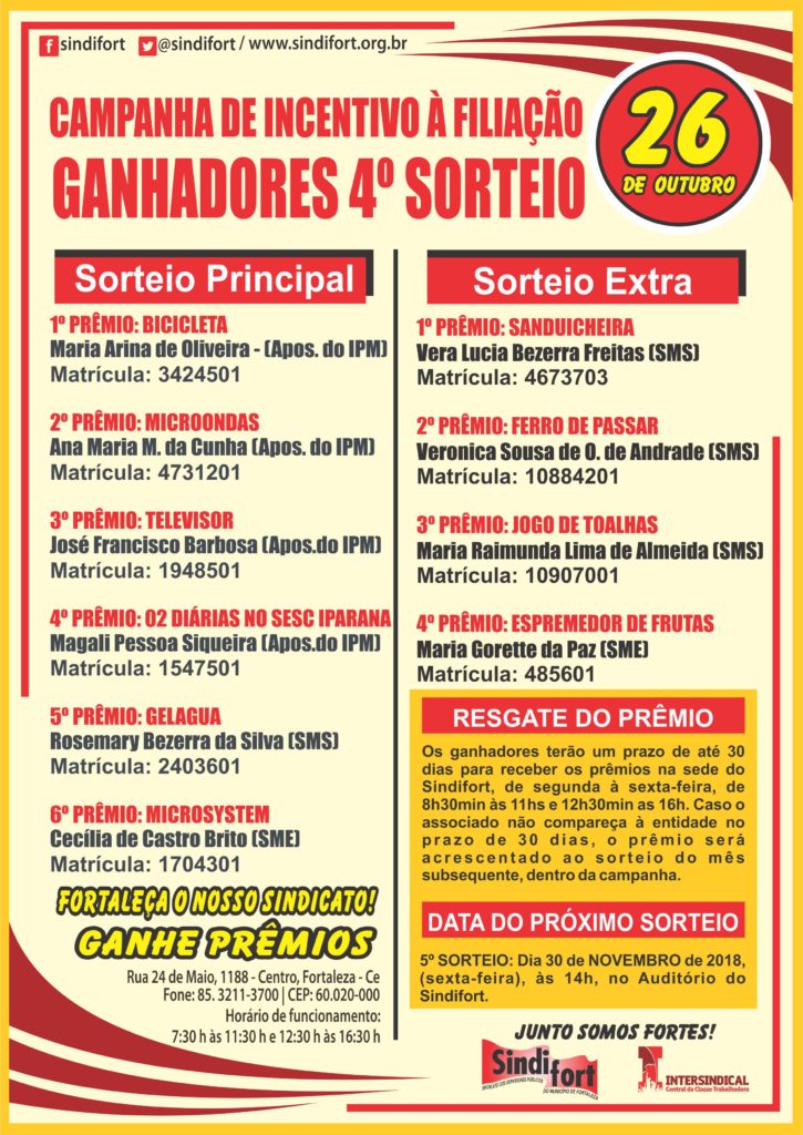 Ganhadores quarto sorteio da Campanha de Filiação 201826 de out. de 20181 min de leituraConfira a lista completa dos ganhadores do 4º sorteio da Campanha de Filiação 2018: