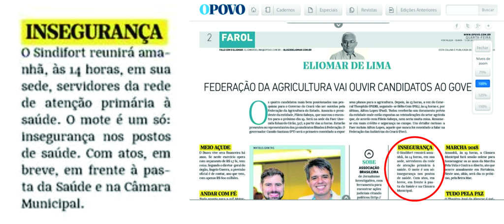 O jornalista Eliomar de Lima destaca hoje (12), em sua coluna no jornal O Povo, a assembleia que o Sindifort realizará nesta quinta-feira (13) às 14h, com servidores da rede de atenção primária (postos de saúde), na sede do sindicato.