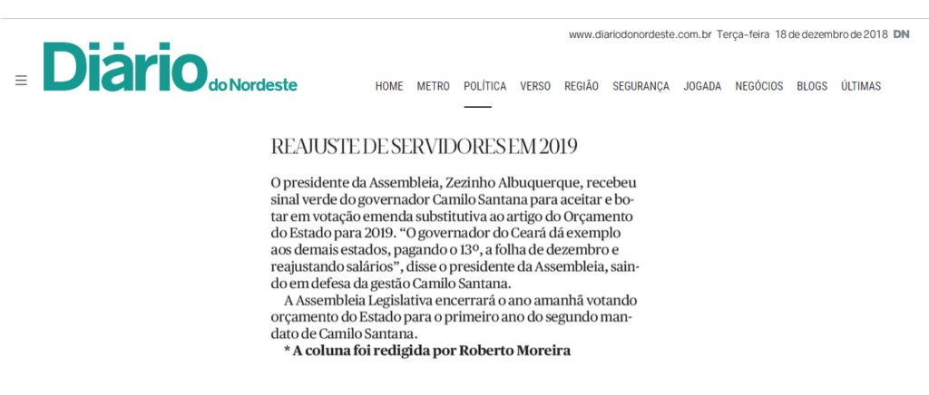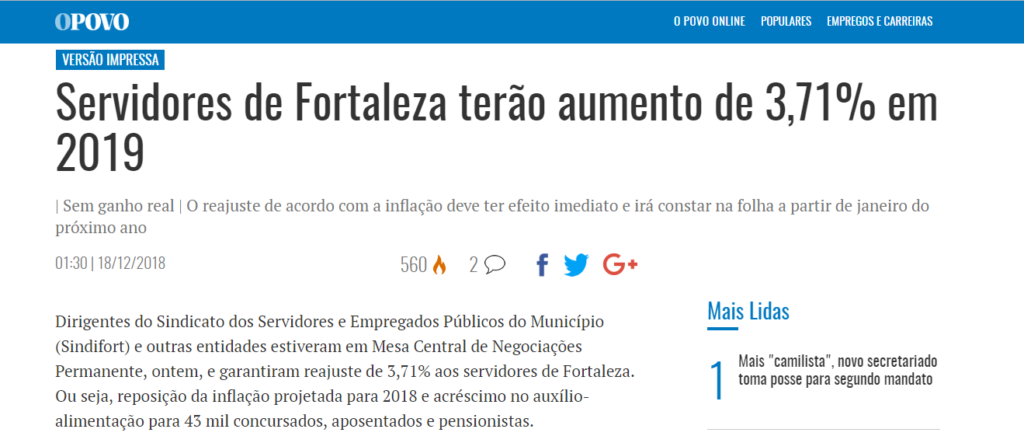 A Campanha Salarial do Sindifort e dos servidores municipais de Fortaleza para 2019 foi destaque nos portais e jornais impressos do estado. Confira: