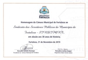 SESSÃO SOLENE NA CÂMARA MUNICIPAL HOMENAGEIA OS 30 ANOS DO SINDIFORT